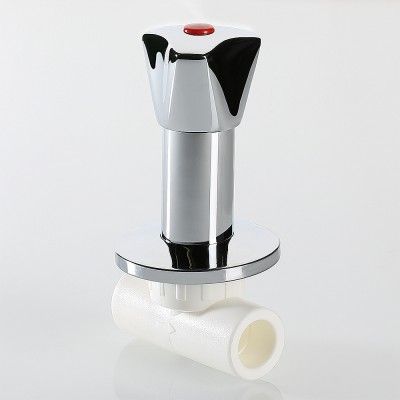 Вентиль с корпусом из полипропилена (заделывается под штукатурку) и хромированными внешними деталями – удлиненной ручкой и декоративной чашкой. Предназначен для использования в составе полипропиленовых трубопроводов холодного и горячего водоснабжения. Монтаж осуществляется методом раструбной сварки.