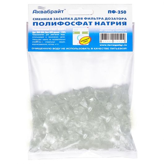 Полифосфат натрия в пакете 250 г. АКВАБРАЙТ (сменная засыпка для фильтра-дозатора)