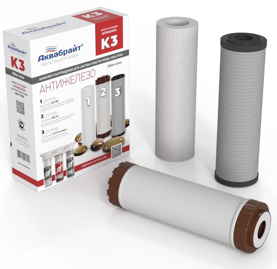 Главная > Каталог > ФИЛЬТРЫ > Трехступенчатая очистка воды > Комплект картриджей ОБЕЗЖЕЛЕЗИВАНИЕ К-3 АКВАБРАЙТ