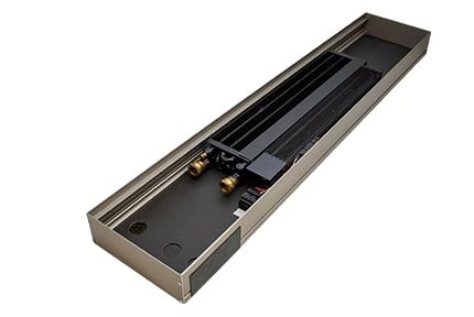 QSKM — конвектор уменьшенной высоты с тангенциальным вентилятором. Можно установить в нишу глубиной от 79 мм.